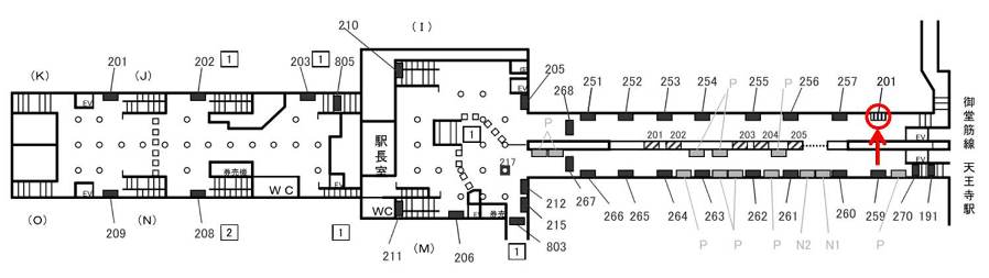 Osaka Metro(大阪メトロ) - 2014年11月11日の1日乗降人員は259,317人(乗車人員:130,905人、降車人員:128,412人)Osaka Metro(大阪メトロ)の駅では梅田駅、難波駅に次ぐ第3位。