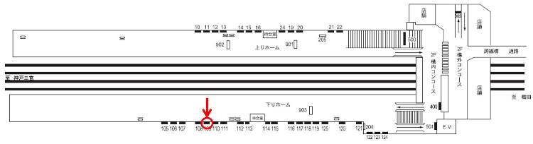 ホームに掲出されますので、三宮方面をご利用の方々はもちろん、梅田方面をご利用の方々も電車のお待ちの方々からも御覧頂くことが可能です。