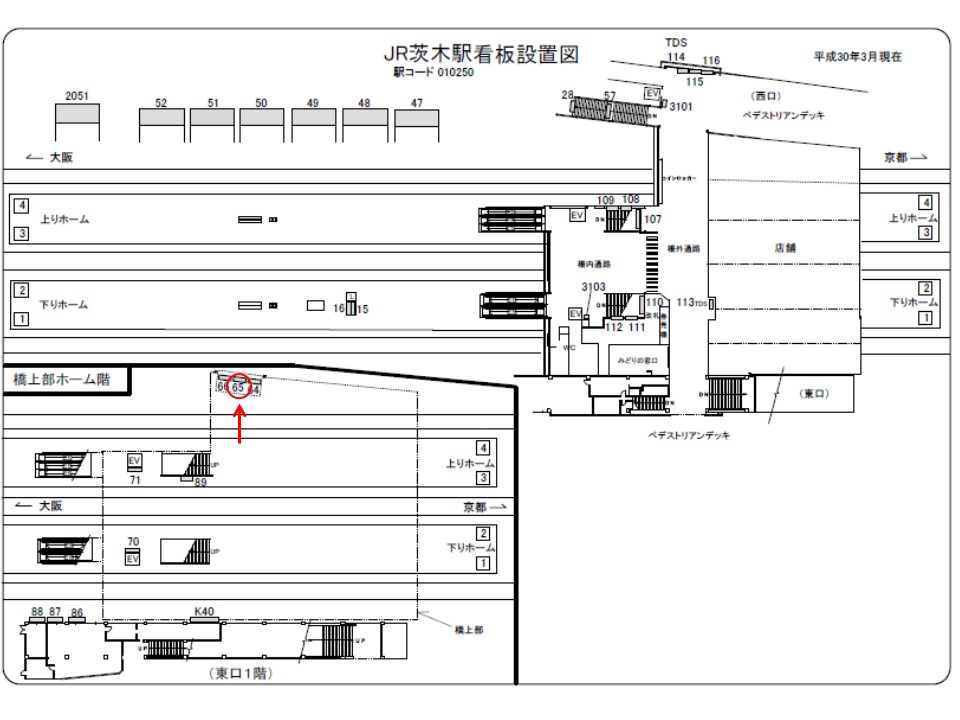 JR茨木駅、ホームの駅広告(駅看板)設備のご紹介です。