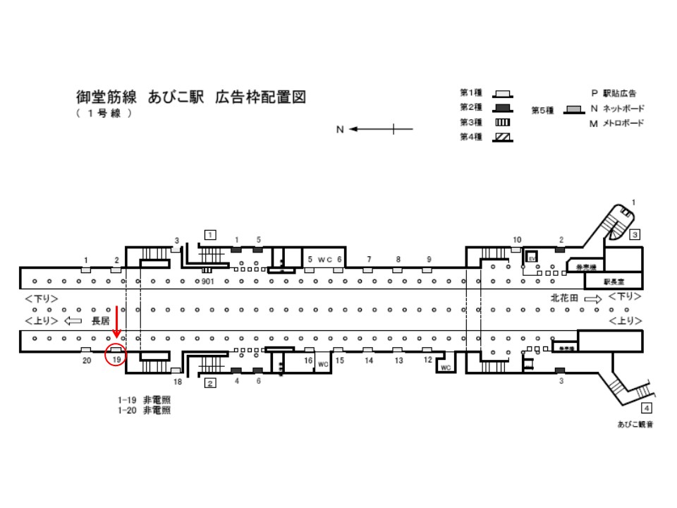 地下鉄あびこ駅、ホームの駅広告(駅看板)設備のご紹介です。
