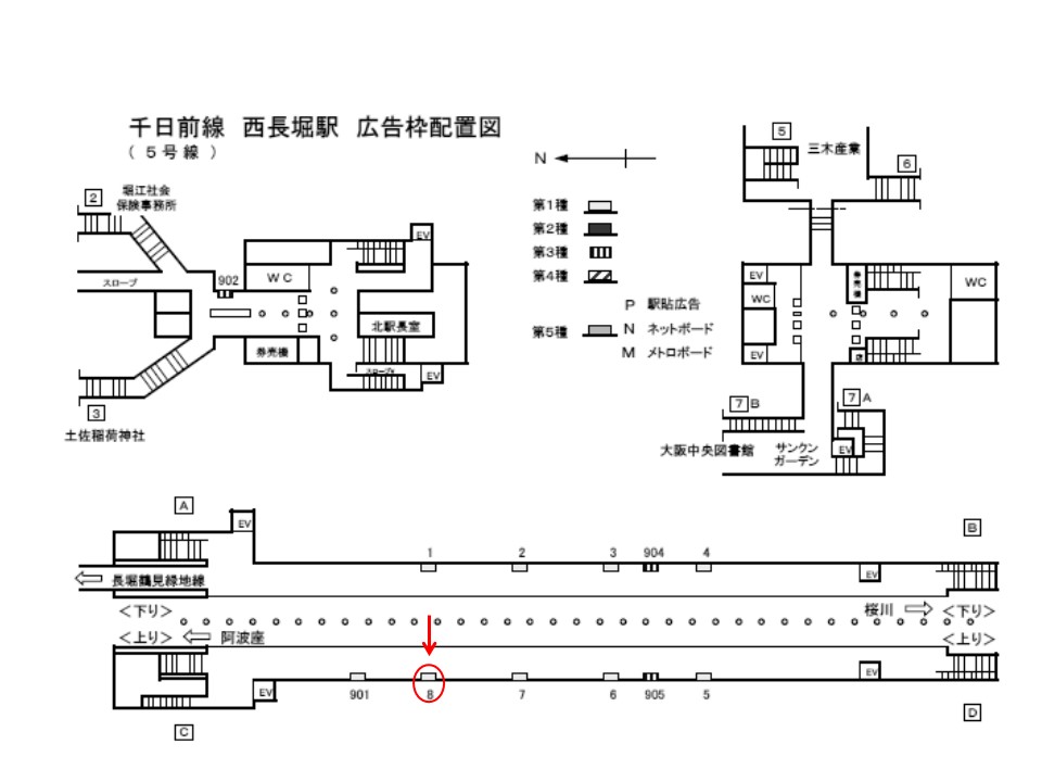 地下鉄千日前線西長堀駅、ホームの駅広告(駅看板)設備のご紹介です。