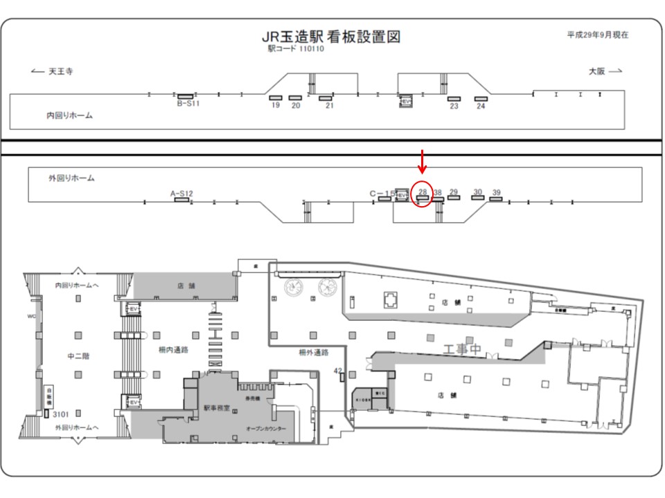 JR玉造駅、ホームの駅広告(駅看板)設備のご紹介です。