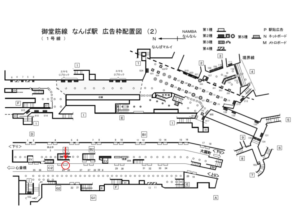 Osaka Metro なんば駅、ホームの駅広告(駅看板)設備のご紹介です。