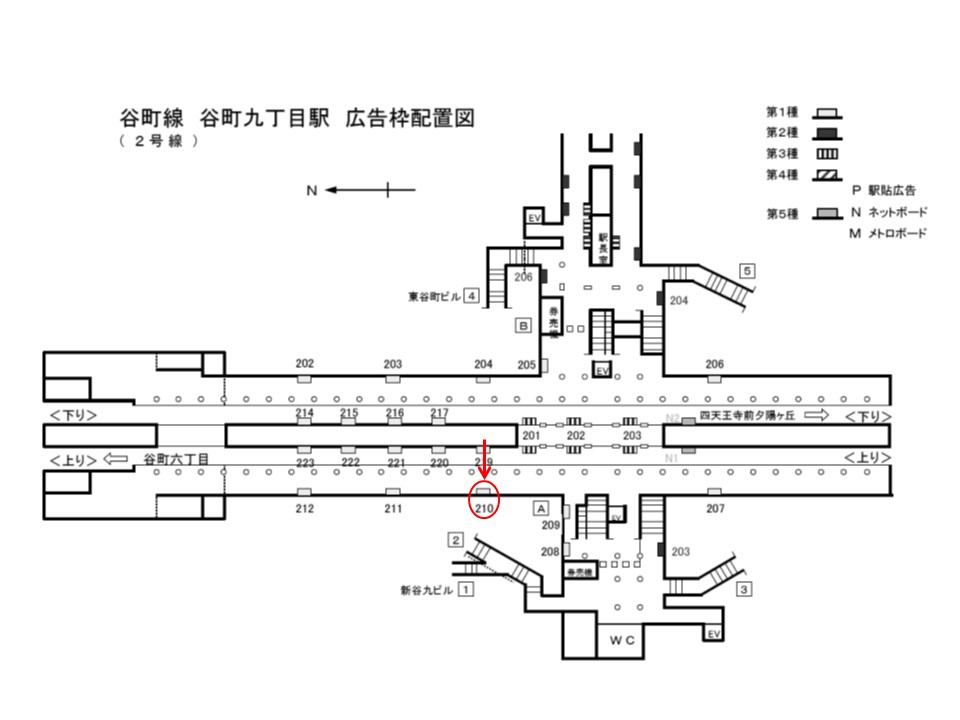 地下鉄谷町九丁目駅、ホームの駅広告(駅看板)設備のご紹介です。