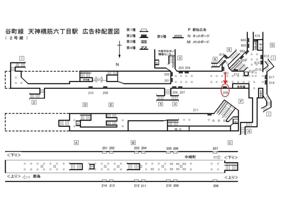 地下鉄天神橋筋六丁目駅、コンコースの駅広告(駅看板)設備のご紹介です。