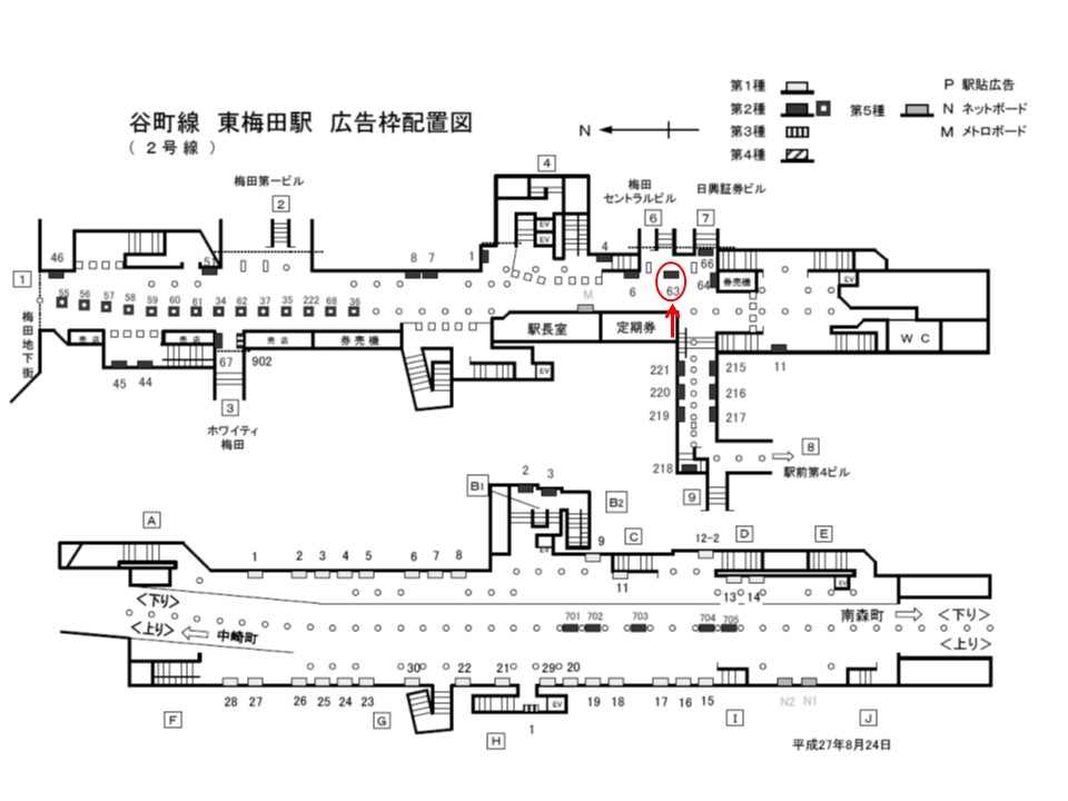 地下鉄東梅田駅、コンコースの駅広告(駅看板)設備のご紹介です。