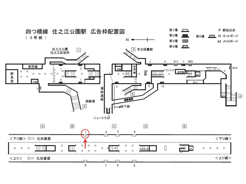 地下鉄住之江公園駅、ホームの駅広告(駅看板)設備のご紹介です。