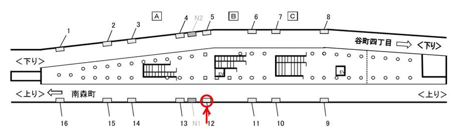 主に上りホーム(南森町方面)にて電車をお待ちの方々に視認されます。