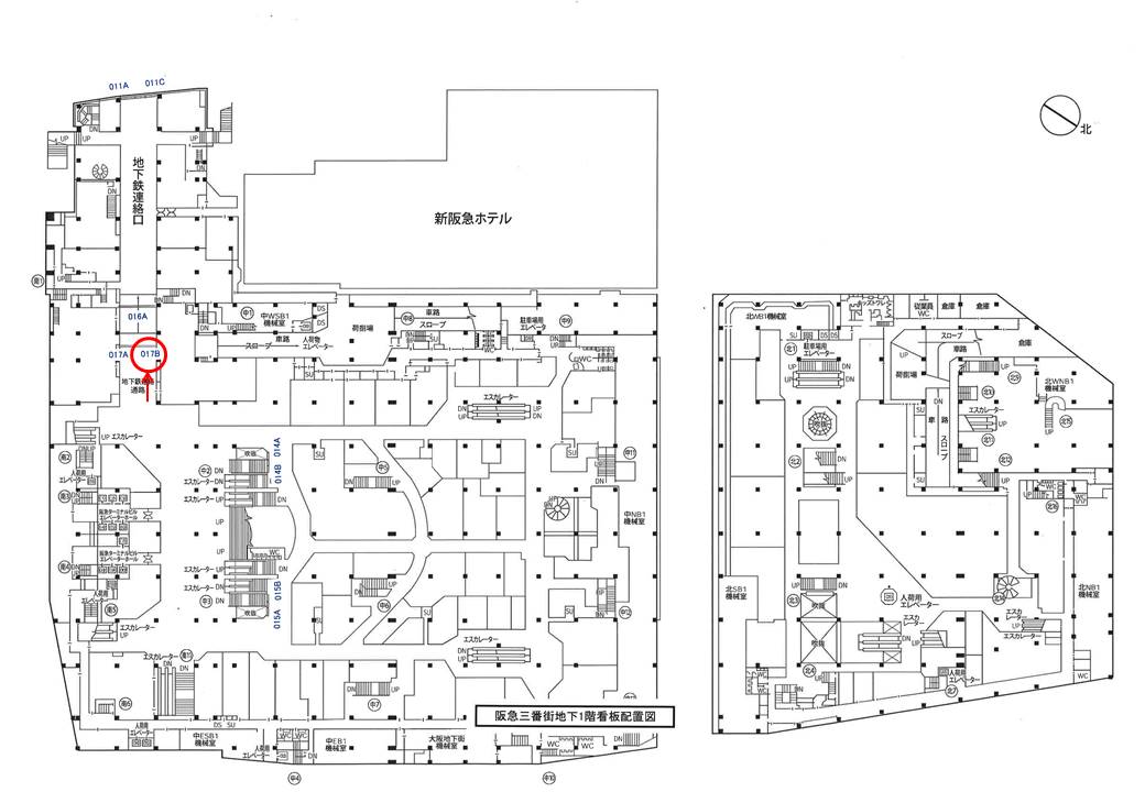 阪急 大阪梅田駅、三番街地下1階地下鉄連絡口に設置された駅広告(駅看板)の設備紹介です。
