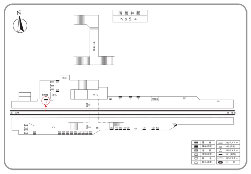 梅田方面ホームをご利用の方々はもちろん、宝塚方面ホームをご利用の方々にもご覧頂ける媒体となります。