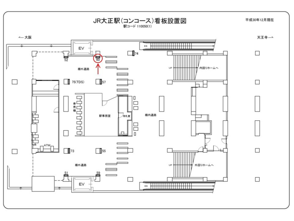 JR大正駅、コンコースの駅広告(駅看板)設備のご紹介です。