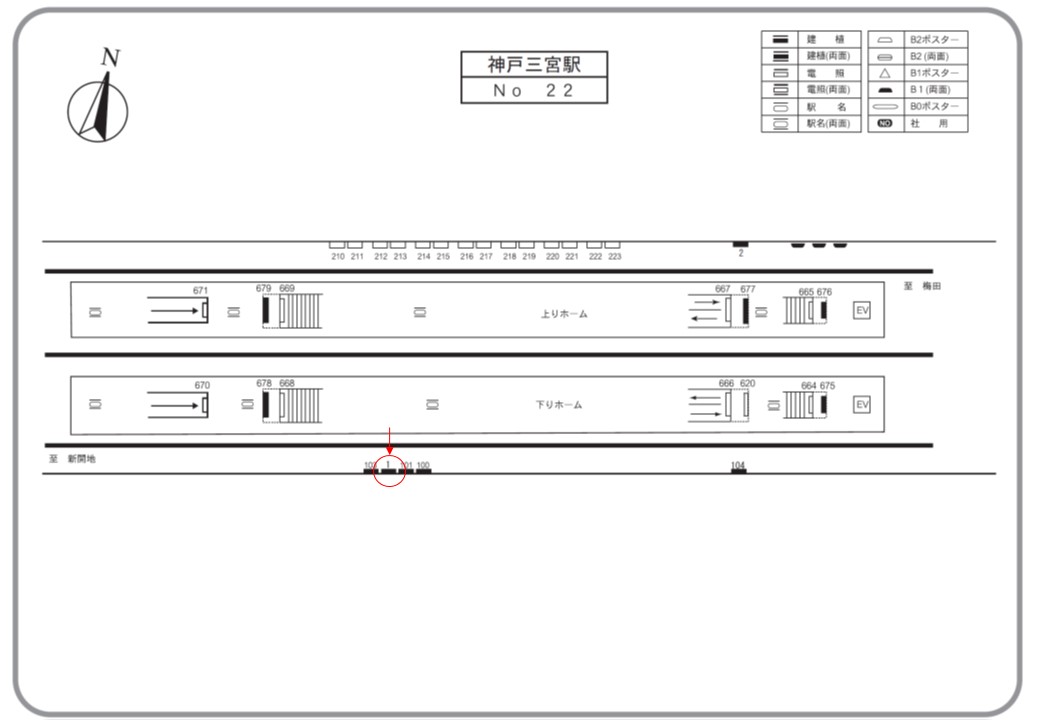 阪急 神戸三宮駅、線路前に設置された駅広告(駅看板)の設備紹介です。