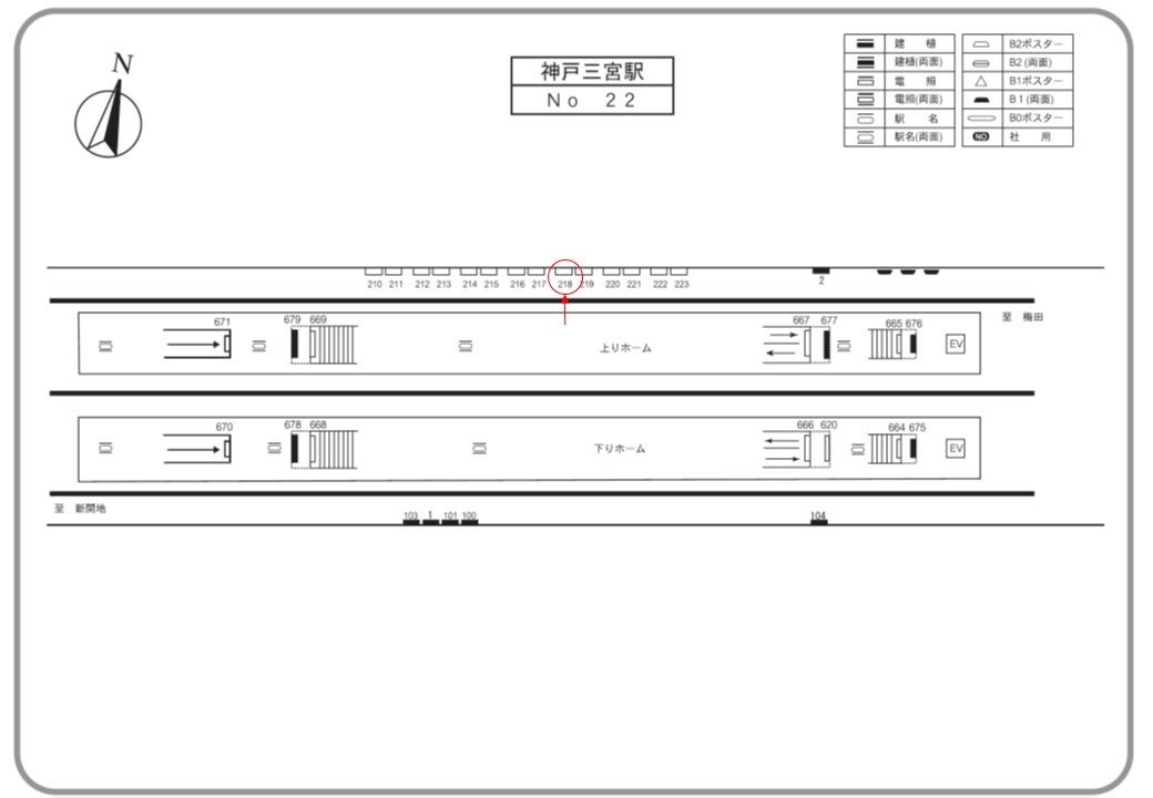 駅貼りポスターをはじめ2019年新設されたビジョン広告「神戸三宮東改札前」やホーム階段壁面に設置される壁面パネル等ございます、また阪神神戸三宮駅にも掲出されるセット媒体がございます。