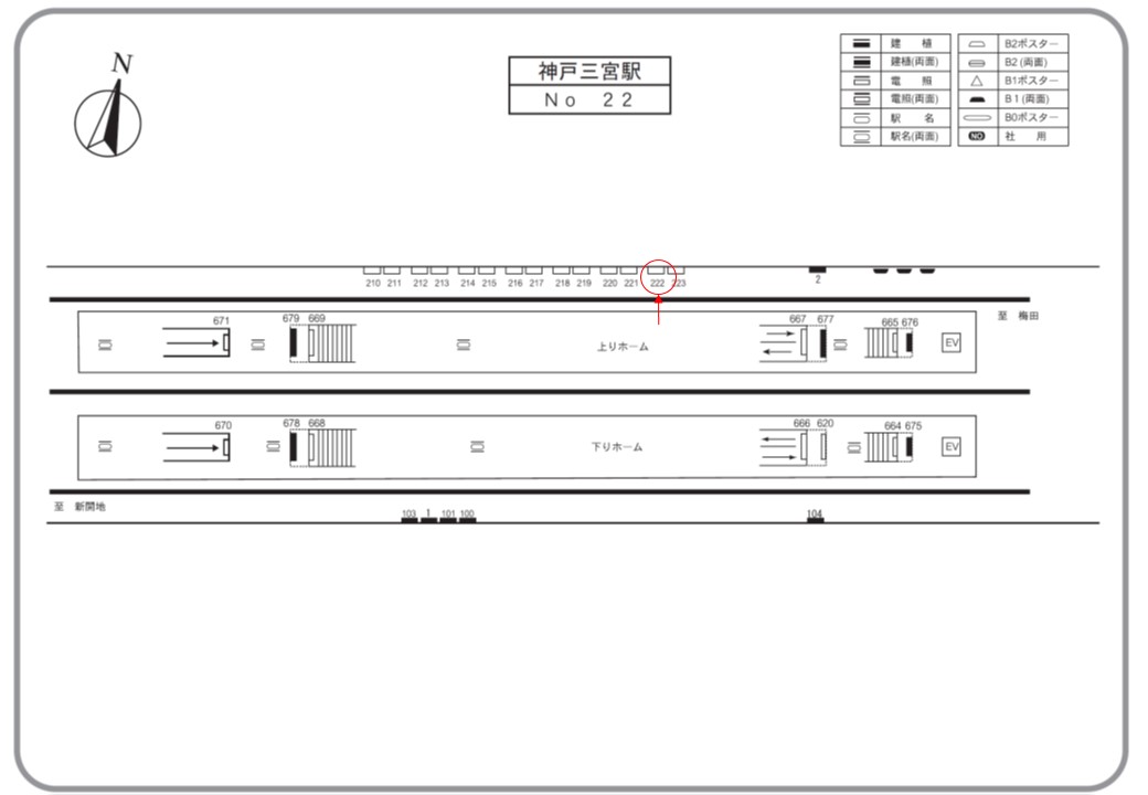 阪急 神戸三宮駅、線路前に設置された駅広告(駅看板)の設備紹介です。