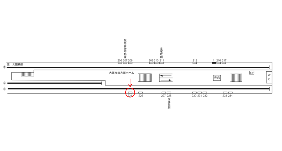 京都河原町駅の線路前にある広告看板です。桂・高槻市・茨木市・淡路・十三・大阪梅田・天下茶屋・北千里・嵐山・神戸・宝塚方面の電車を待つ人に見てもらえます。