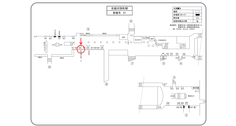 阪急 京都河原町駅/№624B№B駅看板・駅広告、位置図