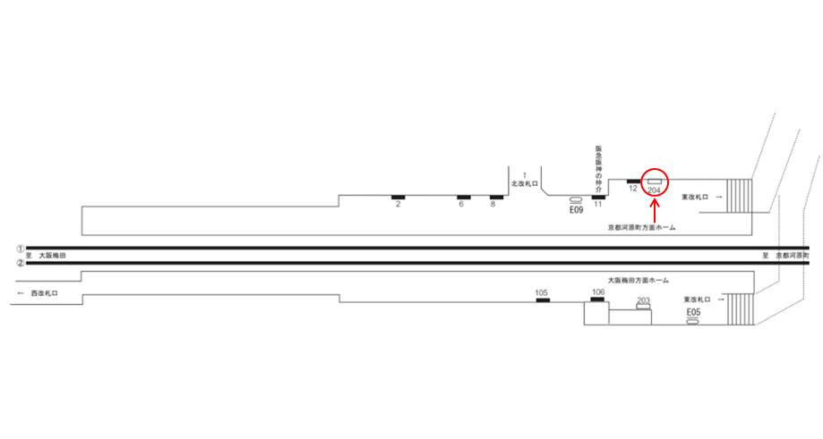 大宮駅のホーム上にある広告看板です。烏丸・京都河原町方面の電車を待つ人に見てもらえます。