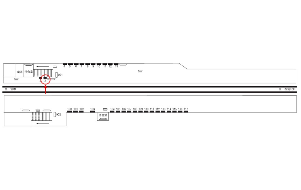 阪急今津線逆瀬川駅の西宮北口方面行きホーム壁面に設置されています。