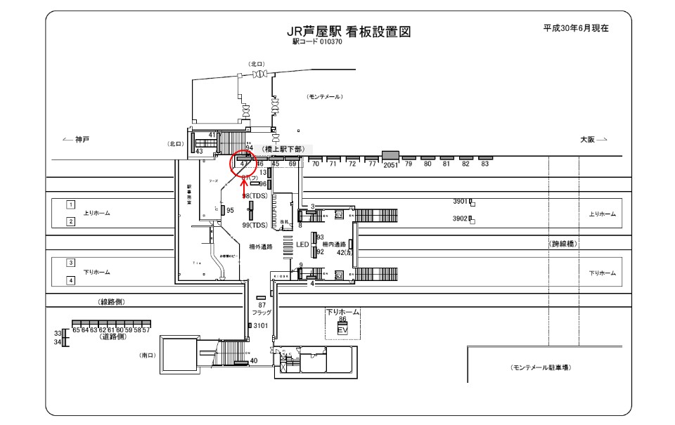 JR芦屋駅、ホームの駅広告(駅看板)設備のご紹介です。