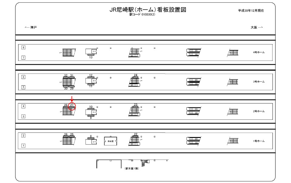 駅看板「JR 尼崎駅 №027」