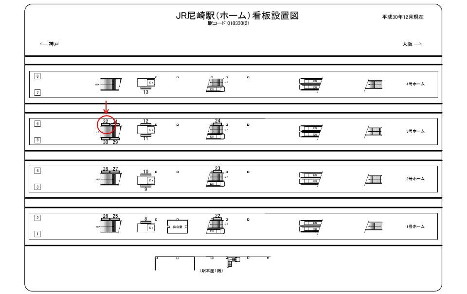 JR神戸線尼崎駅6番ホーム(大阪・京都方面)に設置されている広告看板になります。