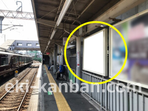 柴島駅のホーム上にある広告看板です。北千里・高槻市・京都河原町・嵐山・大阪梅田・神戸三宮・宝塚方面の電車を待つ人に見てもらえます。